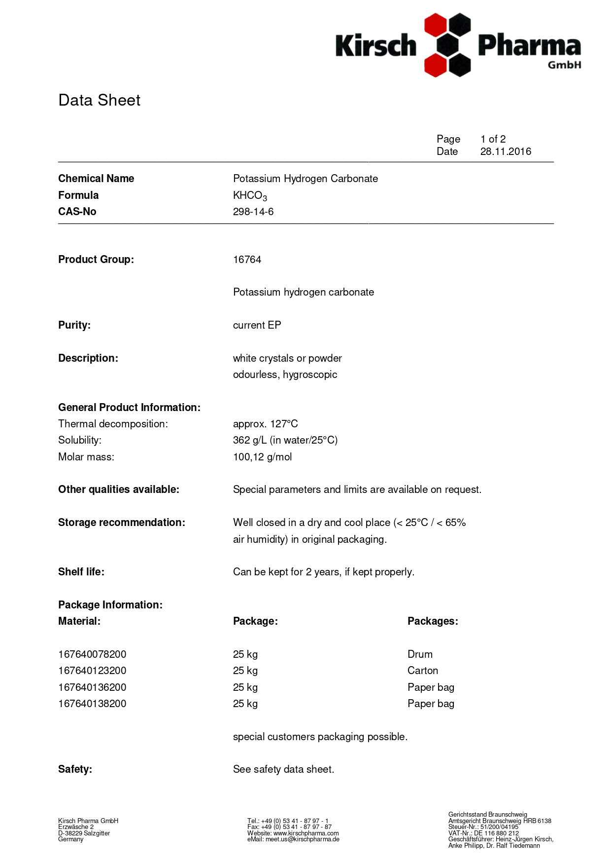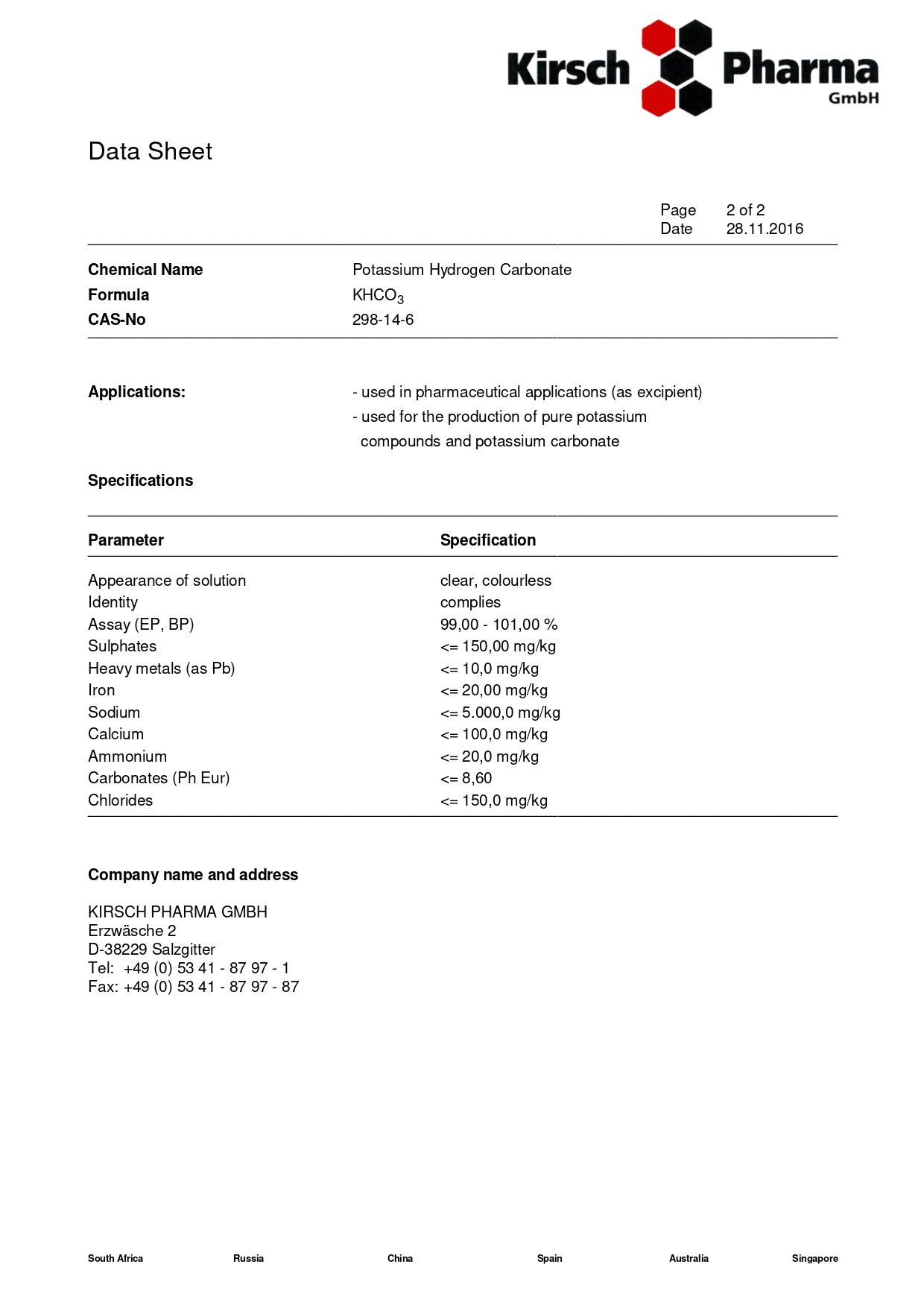 Калий гидрокарбонат — белые кристаллы или порошок, без запаха, хорошо растворимые в воде. Применение: