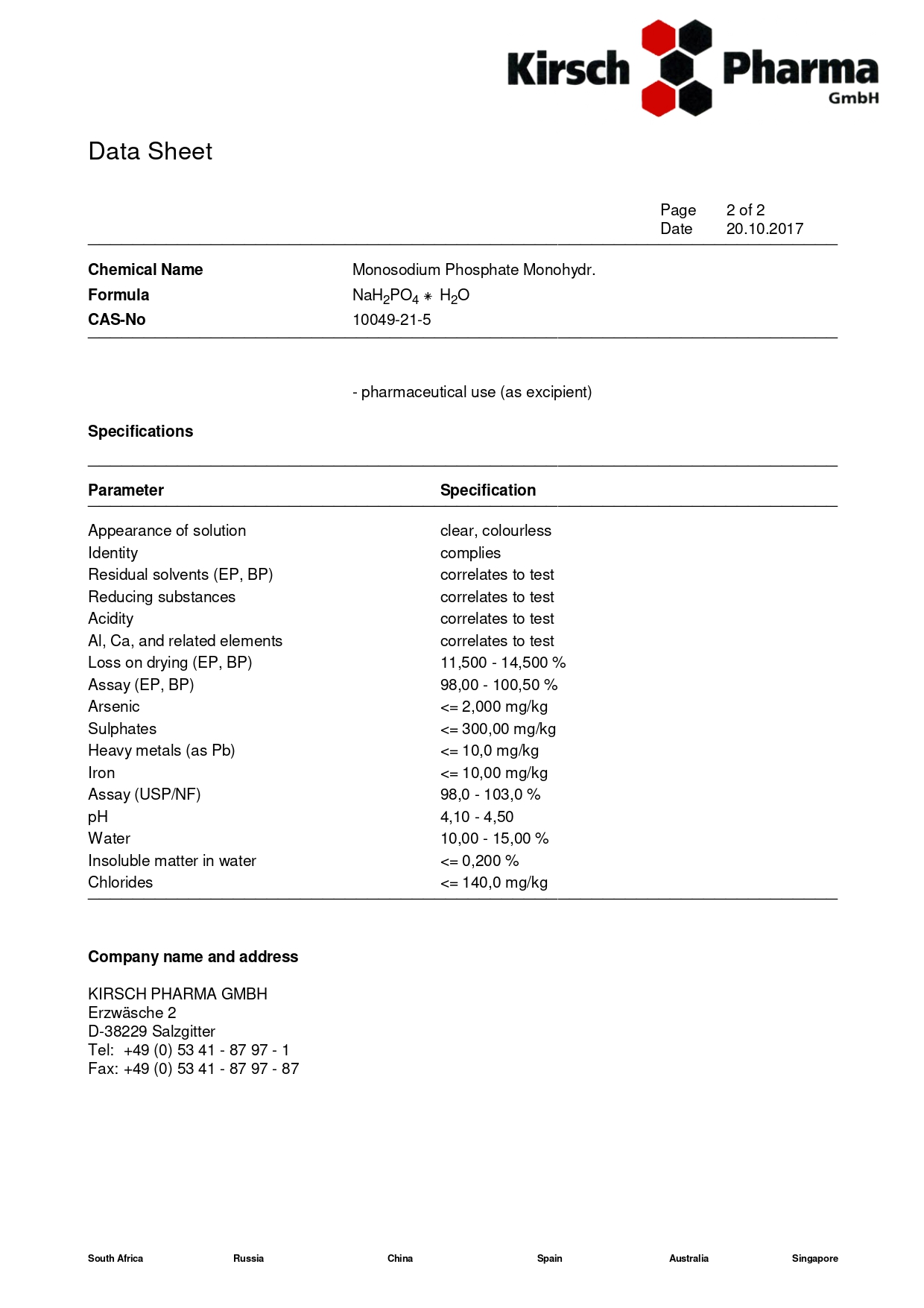Другое название: натрий фосфорнокислый 1-замещенный 1-водный