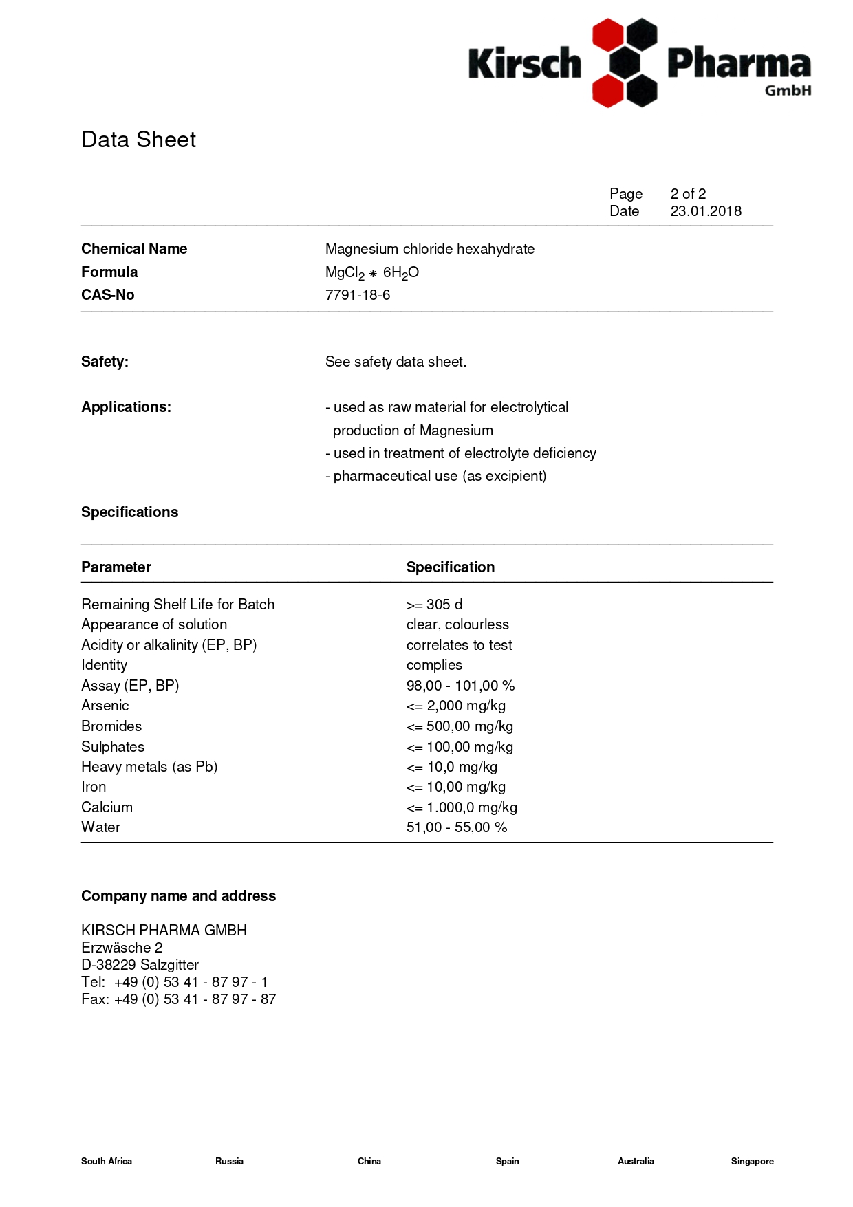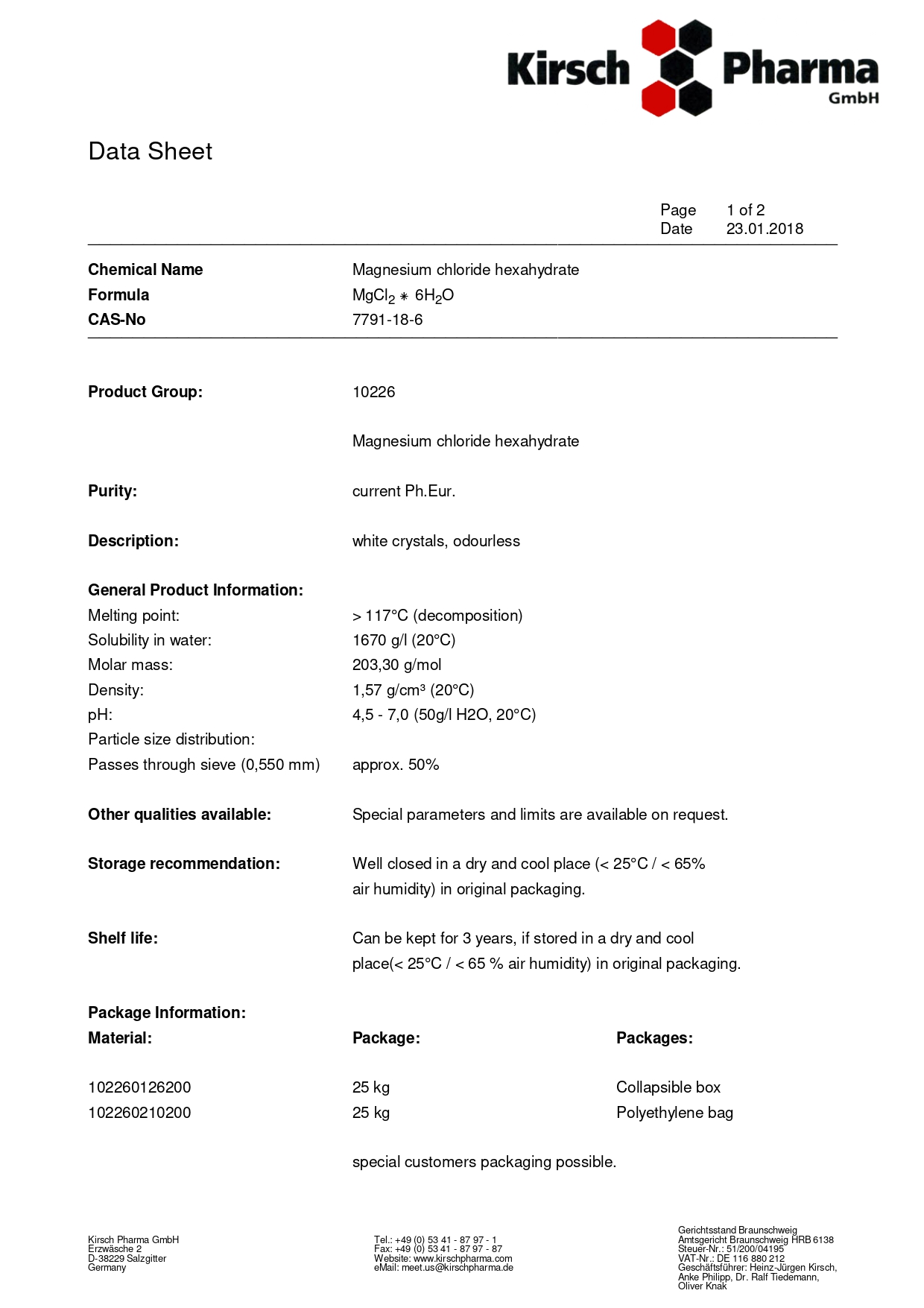 Магний хлорид гексагидрат — белые кристаллы без запаха. Применение: