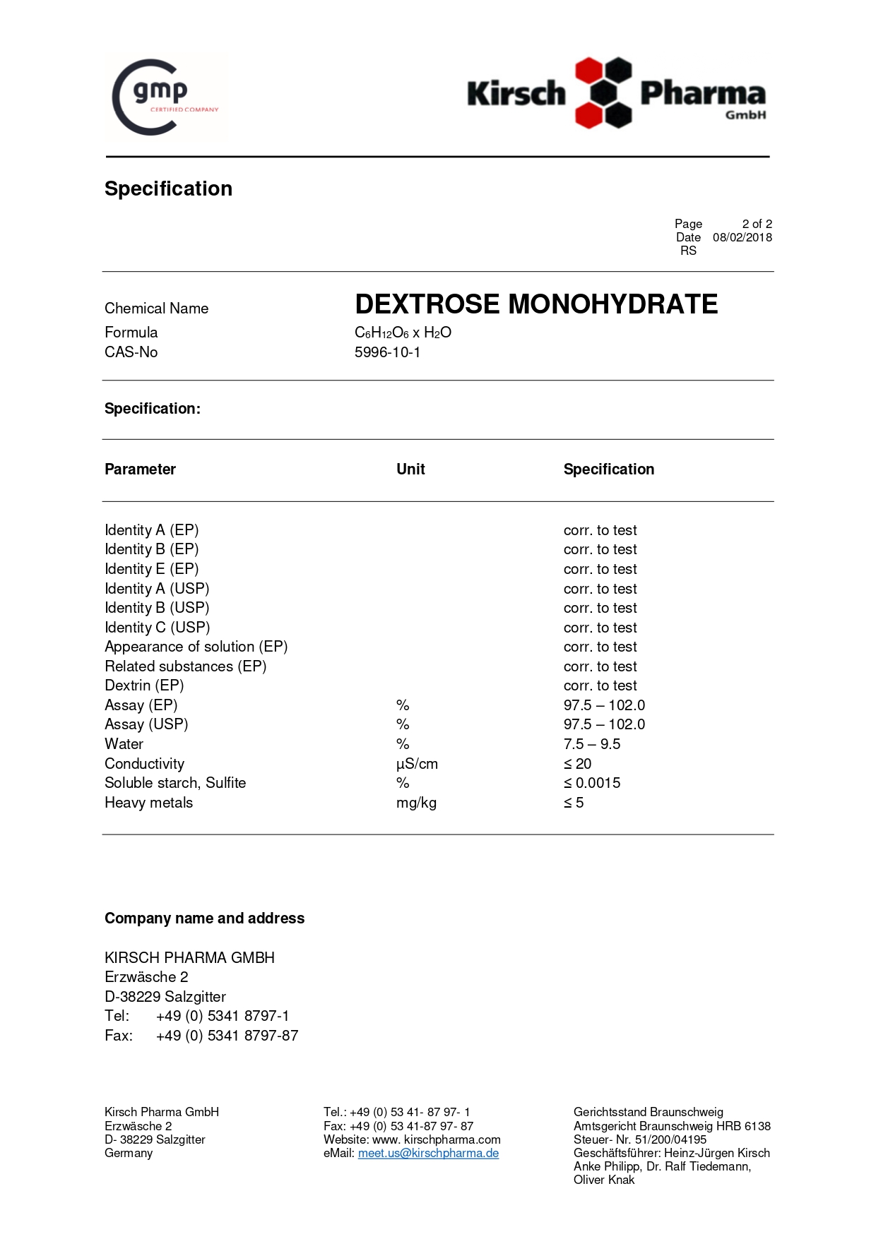 Квалификация: EP, USP